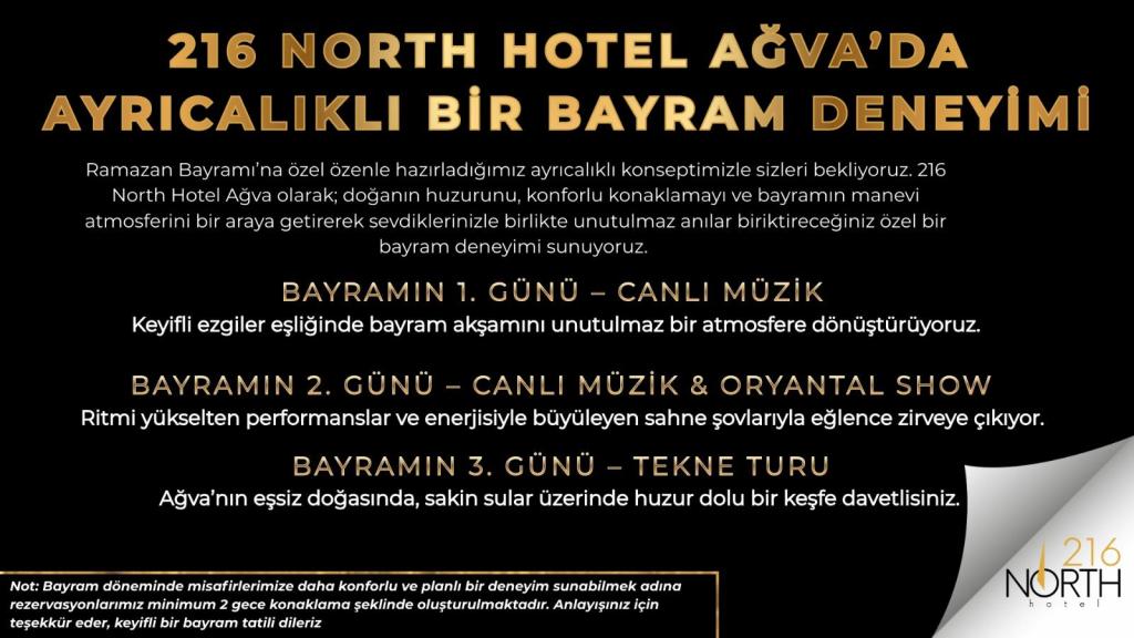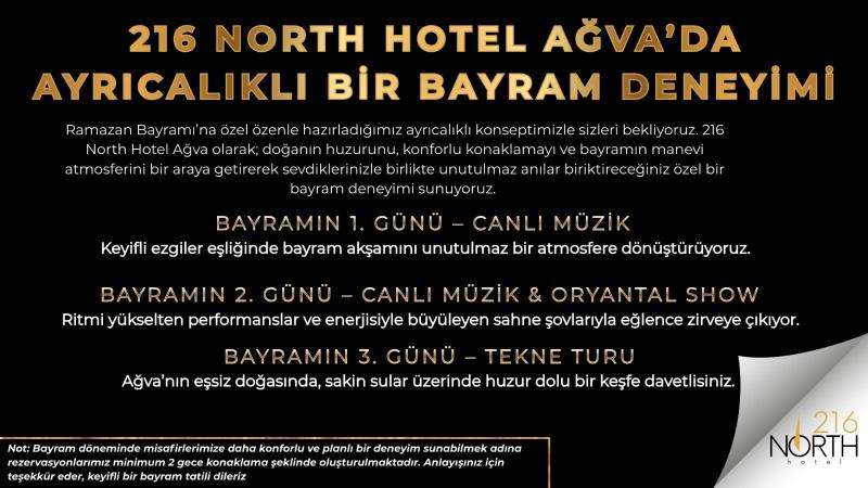 216 North Hotel & Wellness SPA ,Ağva Göksu Nehrinin en temiz bölgesinde konumlandırılmış kendine has mimarisi ve hizmetiyle misafirlerin her anını özel kılan üst sınıf bir butik oteldir.